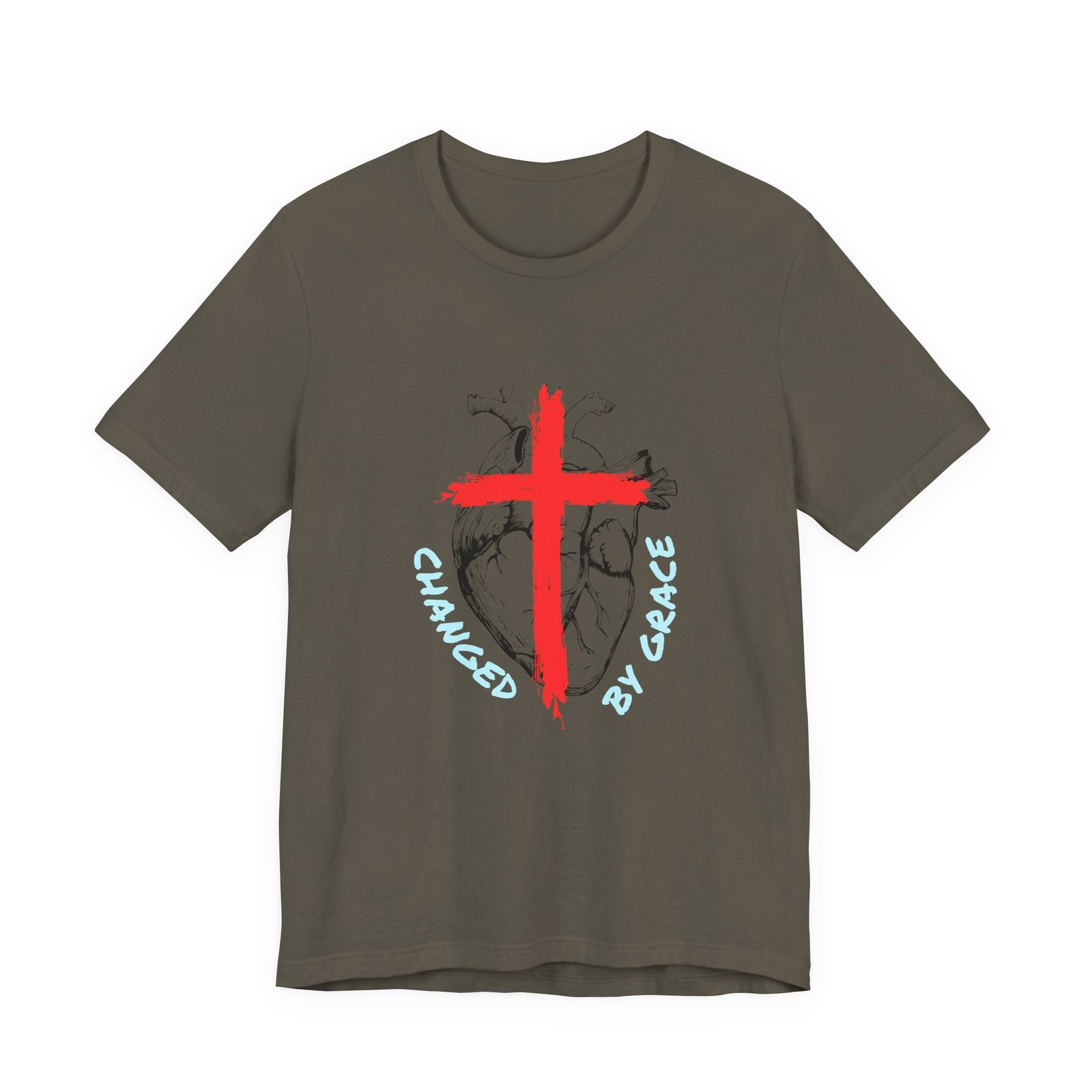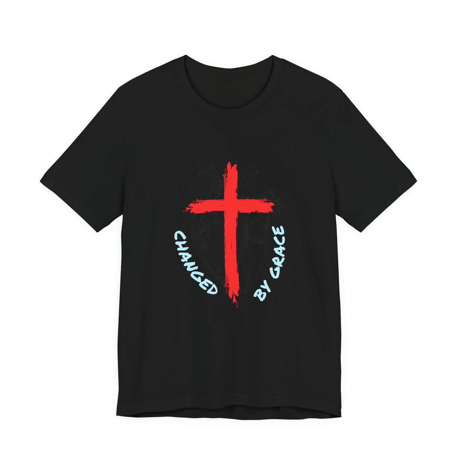Saved by Grace T-shirt — a quiet, wearable reminder of mercy and faith. The simple red cross centered on the chest reads like a small proclamation: rescued, forgiven, and held by grace. Lightweight cotton drapes softly against skin, so the message feels lived-in, not loud. Wear it on Sunday mornings, after small-group prayers, or on errands when you want a gentle witness without fanfare. The crew neckline and clean retail fit layer well under sweaters or over long sleeves. This tee settles into your everyday rhythm, a subtle piece that sparks conversation and anchors moments of gratitude.